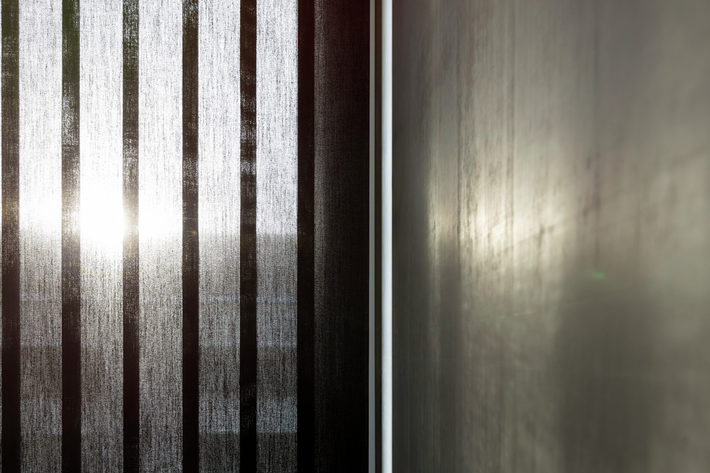 Motorstyrning ger en lyxig känsla och lamellgardinen manövreras bekvämt med en väggströmbrytare, fjärrkontroll eller mobilappen Silent Gliss Move.